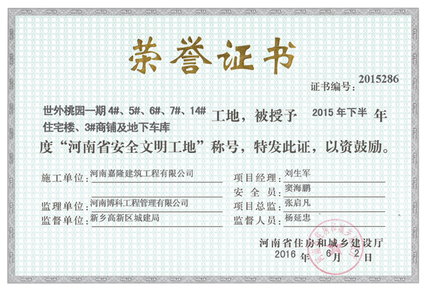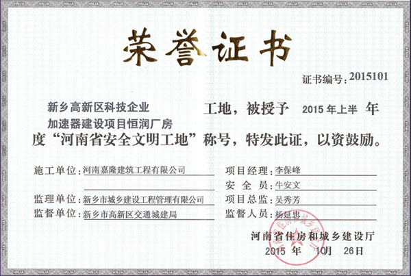 中州杯工程證書