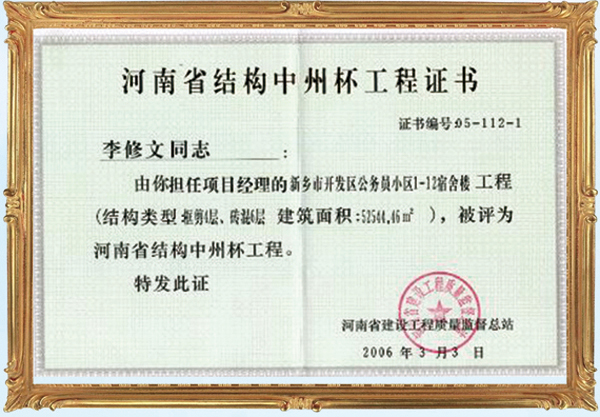 在發(fā)展的歷程中,河南嘉隆建筑工程有限公司不斷加強(qiáng)全面管理,注重提高自身素質(zhì),以合同的工期,優(yōu)良的質(zhì)量,滿意的服務(wù),贏得了信譽(yù),公司先后榮獲了新鄉(xiāng)市***單位、新鄉(xiāng)市***集體單位、新鄉(xiāng)市***企業(yè)、全國(guó)用戶滿意施工企業(yè)、全國(guó)**施工企業(yè)、新鄉(xiāng)市守信企業(yè)、新鄉(xiāng)市質(zhì)量效益型企業(yè)、新鄉(xiāng)市安全文明標(biāo)準(zhǔn)化工地、昆明春城杯等榮譽(yù)稱號(hào)。